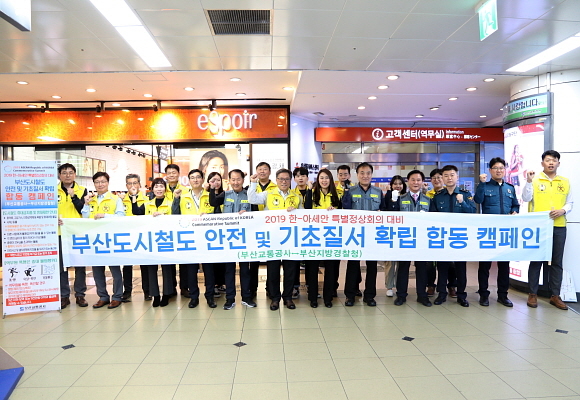 부산교통공사와 부산지방경찰청은 ‘한-아세안 정상회담’을 앞두고 지난달 21일부터 매주 목요일 도시철도 주요 역에서 도시철도 위험요소 예방, 기초질서 준수 캠페인을 진행한다고 1일 밝혔다.