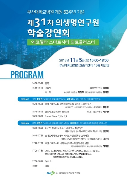 부산대병원은 개원 63주년을 맞아 오는 5일 오후 3시 부산대병원 권역호흡기전문질환센터 대강당에서 ‘에코델타 스마트시티 의료클러스터’를 주제로 학술강연회를 개최한다고 4일 밝혔다.