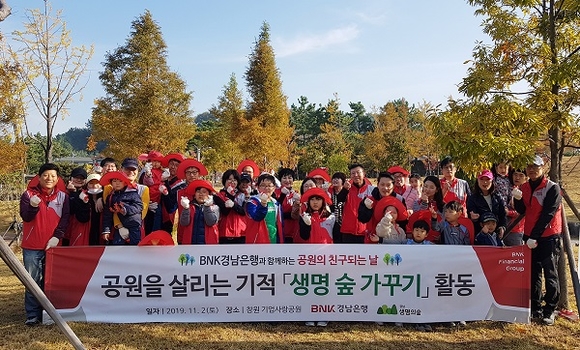경남은행이 실시한 생명숲 가꾸기 봉사활동은 도심 공원의 가치를 높이기 위해 지난 2015년부터 매년 전국 6개 도시(서울·부산·대구·경남·전주·광주)에서 릴레이로 진행 중인 ‘은행과 함께하는 공원의 친구되는 날’이라는 자원봉사 프로그램이다.