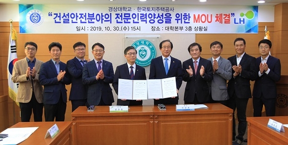 경상대학교는 한국토지주택공사(LH)와 계약학과인 '건설안전공학과'를 신설하기로 하고 협약 체결식을 지난 30일 대학본부 3층 소회의실에서 개최했다.