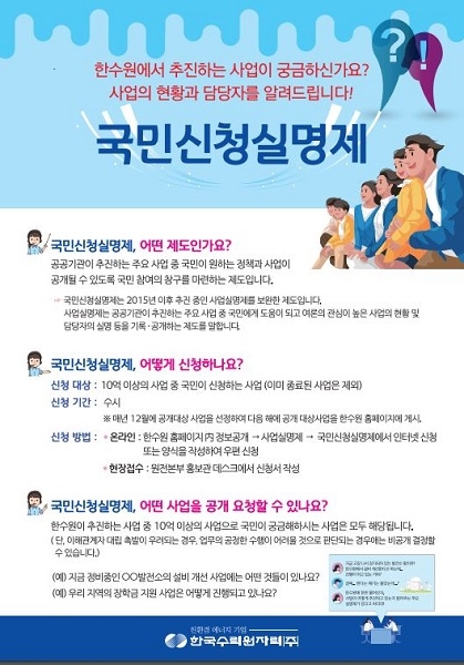 지역참여형 국민신청실명제는 지역 주민들에게 해당 제도를 직접 설명하고 현장접수를 받는 등 ‘지역참여’에 중점을 두고 추진하는 ‘한수원형 국민신청실명제’를 의미한다.