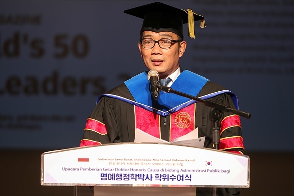 동아대학교는 인도네시아 건축 및 도시 문화의 혁신적 성장에 헌신하고 정치·경제·사회·문화 발전에 기여한 업적을 높이 사 모하마드 리드완 카밀 주지사에게 명예행정학박사 학위를 수여했다고 5일 밝혔다.