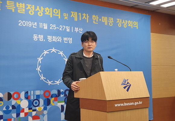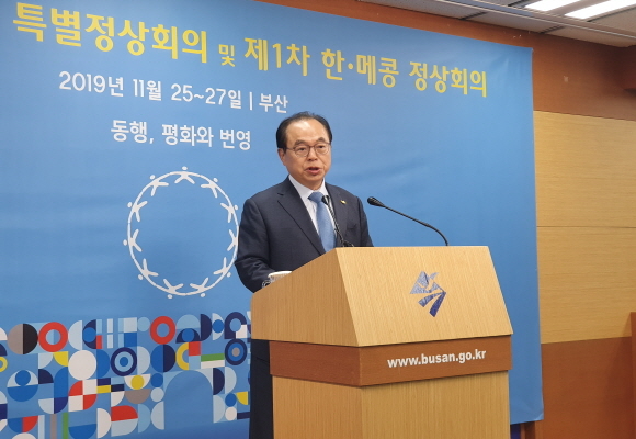 부산시와 오거돈 부산시장, 탁현민 청와대 행사기획 자문위원 등은 5일 오후 시청 9층 브리핑실에서 기자회견을 열고 한-아세안 정상회담 D-15 부산 행사에 대해 안내했다.