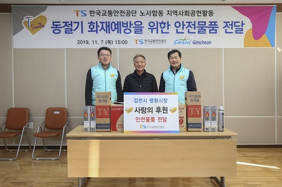 한국교통안전공단은 7일 경북 김천시 소재 평화시장을 방문해 시장 상인들과 소통의 시간을 가지고 안전용품(소화기) 100개를 전달했다고 밝혔다.