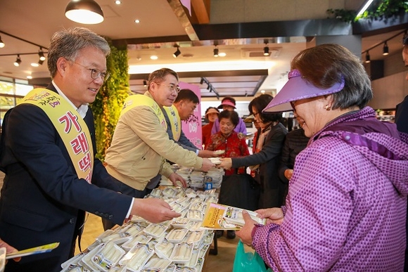 경남농협이 11월 11일 ‘농업인의 날’을 맞이해 경남농협 내 로컬푸드 경남 통합센터에서 창원시민을 대상으로‘가래떡 데이’ 행사를 펼쳤다.