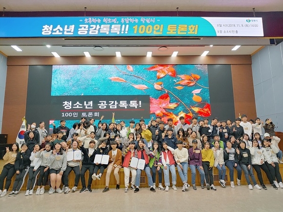 경남 창원시는 지난 9일 시청 시민홀에서 청소년들의 안전한 성장을 도모하고 청소년 눈높이에 맞는 정책 제안 및 발굴을 위한 '청소년 공감톡톡! 100인 토론회'를 열었다.