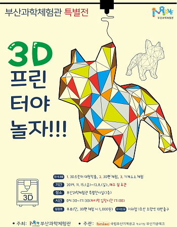 부산시과학교육원이 오는 15일부터 내달 8일까지 부산과학체험관 1층 특별전시실에서 ‘3D 프린터야 놀자’ 특별 전시회를 연다고 13일 밝혔다.