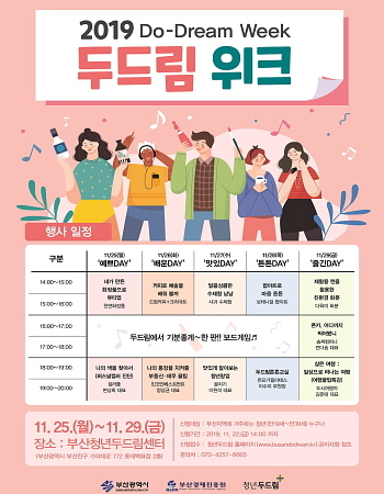 부산시와 부산경제진흥원이 오는 25일부터 30일까지 청년두드림센터에서 ‘2019 두드림 위크’를 개최한다고 13일 밝혔다.