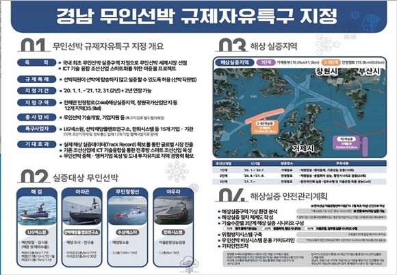 '경남 무인선박 규제자유특구 계획(안)'이 지난 12일 국무총리 주재 '규제특구위원회' 심의‧의결을 거쳐 규제자유특구로 최종 지정됐다.