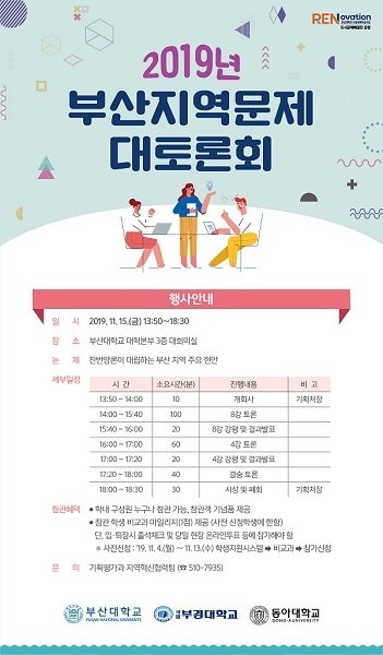 이 자리에서 부산을 대표하는 국·사립 대학인 부산대·부경대·동아대 학생들이 참여해 당면한 부산지 역문제를 주제로 심도 있는 토론을 펼칠 예정이다.