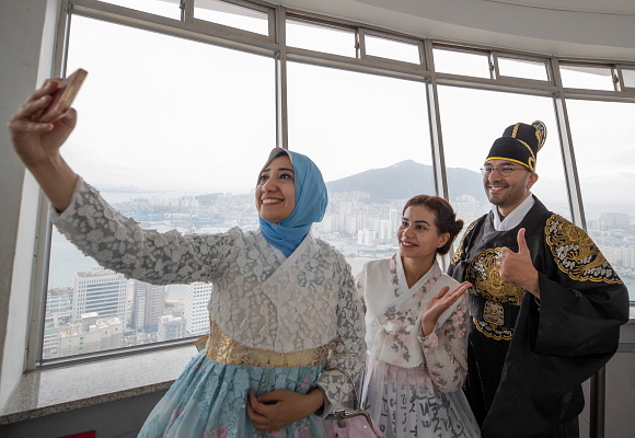 또 용두산공원 한복 체험관 아담, 동래파전·기장미역국·낙지볶음 등 부산 음식으로 한상 차림을 만드는 부산쿠킹클래스, 부산전통예술관에서 전통신 화혜장 제작 체험 등을 했다.