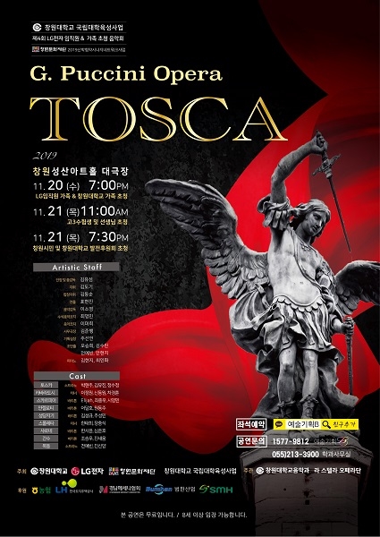 창원대 국립대학육성사업의 지원을 통해 마련되는 이번 오페라 공연은 지역에서는 드물게 ‘토스카’의 아름다운 아리아 선율을 접할 수 있는 수준 높은 문화예술의 향연이 될 전망이다.