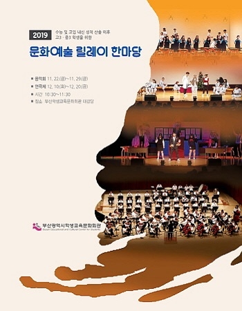 부산시학생교육문화회관은 오는 22일부터 내달 20일까지 부산교육문화회관 대강당에서 다양한 문화 예술공연을 선보이는 ‘문화 예술 릴레이 한마당’을 운영한다고 18일 밝혔다.
