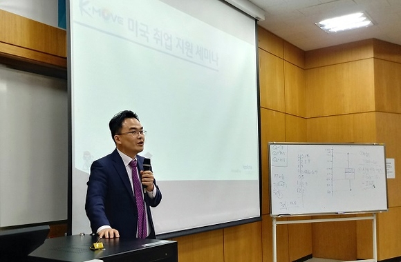 지난 14일에는 KOTRA 뉴욕무역관 박준섭 과장을 초청해 현지에서 바라보는 미국 취업 전략 세미나를 개최했다.