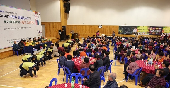 이날 잔치 분위기에 맞춰 자원봉사자들이 색소폰, 통기타 연주 등 음악공연과 초청 예술단의 공연을 통해 흥을 돋웠다. 또 울산의 밝은눈안과와 뉴욕스마트치과 의료진, 새울본부 재난환경팀의 간호사와 협조해 어르신에게 무료로 건강 검진 기회를 제공했다.