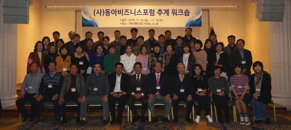 동아대학교는 부산·경남·울산지역 대표 기업인 모임인 (사)동아비즈니스포럼이 2019년 추계 워크숍을 1박 2일간 거제 소노캄에서 개최해 회원들 간 화합 기회를 가졌다고 20일 밝혔다.