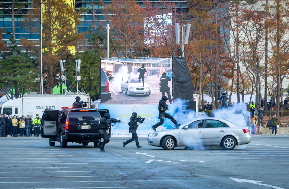 훈련은 드론·차량을 이용한 행사장 돌진, 주요 행사장 점거 및 요인 이동 차량 공격 등 동시다발적 복합 테러 상황을 설정해 진행된다.