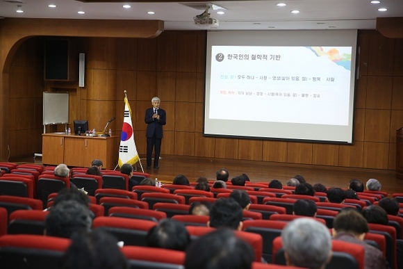 이 교수는 “한국인의 철학적 기반은 ‘하나’에서 출발한다”며 “참된 인간존재의 유지와 회복 등 모든 사람이 가족처럼 다툼이 없는 세상, 즉 홍익인간이 실현되는 세상을 만들자”고 주장했다. 이 교수는 사서삼경을 최초로 완역했으며 ‘나의 서원, 나의 유학’, ‘진리란 무엇인가’ 등을 저술한 바 있다.