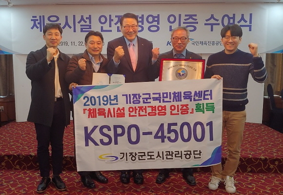 기장군국민체육센터는 체육 시설과 그 부대시설의 자율적인 안전 관리 역량을 강화하고 안전 관리 표준 모델의 발굴, 확산과 시설별 설치 기준 및 안전 관리 강화를 위해 이번 ‘제2차 체육시설 안전 경영 인증 KSPO45001’을 취득했다.