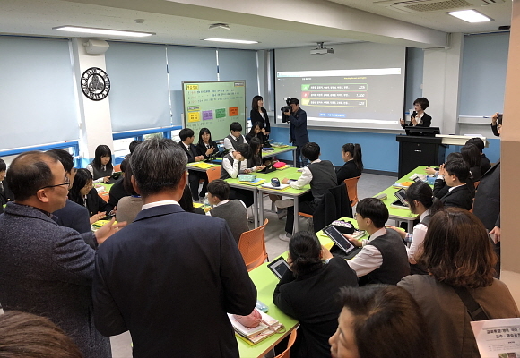 이 교실은 언제 어디서나 인터넷망에 접속할 수 있는 클라우드 시스템과 스마트기기, 태블릿 컴퓨터, 크롬북 등을 통해 다양한 수업과 학습 활동을 할 수 있는 미래형 학습공간이다.