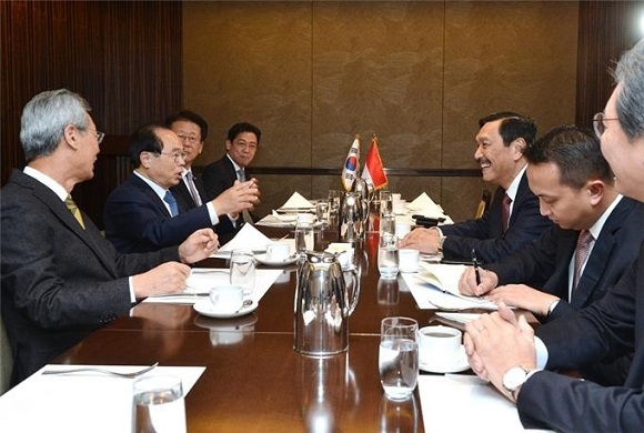 26일 한-아세안 특별정상회의가 부산에서 한참 진행 중인 가운데 오거돈 부산시장이 이날 부산진구 롯데호텔에서 인도네시아 루훗 판자이탄 해양투자조정장관 일행과 조찬 간담회를 진행했다.