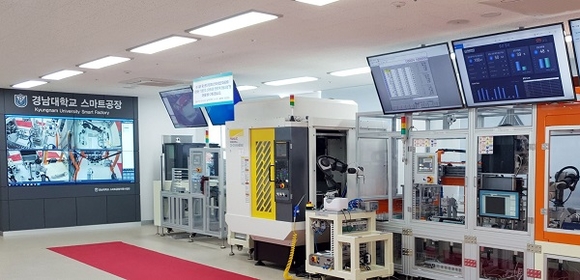 경남대는 올해 중소벤처기업부에서 주관하는 '2019년 산업단지 스마트공장 전문인력양성 사업'에 최종 선정돼 대학 재학생 및 지역의 중소기업 재직자를 대상으로 스마트공장 이론과 실습을 통합 교육하기 위해 스마트공장 솔루션을 최적화한 스마트랩을 구축했다.
