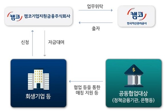 한국자산관리공사(캠코)가 27일 ‘캠코 기업지원금융’을 통해 경쟁력 있는 중소·회생기업 3개사에 최대 2년 동안 총 17억원의 DIP금융을 공급하고 회생기업 정상화 지원을 본격 시행한다고 밝혔다.