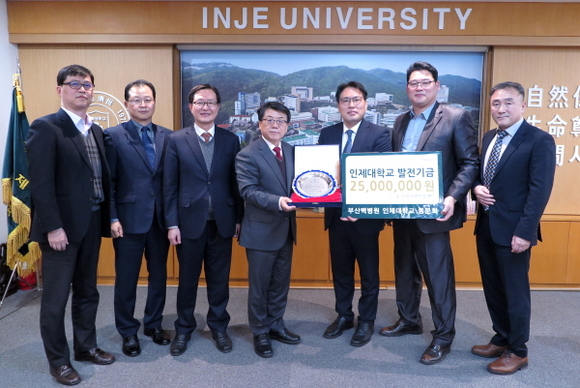 인제대학교는 본교 출신 부산백병원 교직원 동문회 ‘인백회(仁白會)’가 27일 총장실에서 ‘모교사랑·후배사랑 발전기금’ 2500만 원을 기탁했다고 밝혔다.