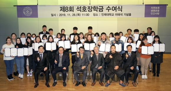 이날 수여식에 참석한 장성덕 석호장학금 운영위원은 “학생 여러분의 학업에 대한 노력과 뜨거운 향학열로 자랑스러운 석호장학금을 수여하게 됐다”며 “인제대가 도전정신과 지성을 갖춘 참된 인재를 양성할 수 있도록 후원을 아끼지 않을 것”이라고 격려했다.