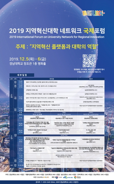 경남대학교 LINC+사업단은 오는 12월 5일부터 6일까지 경남대 창조관에서 ‘2019 지역혁신대학 네트워크 국제포럼’을 개최한다고 28일 밝혔다.