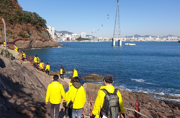 이번 체험단은 SNS를 통해 일반인 대상으로 사전 신청을 받아 구성했다. 이들은 해안절영산책로, 송도해상케이블카, 아미산 전망대, 다대포 등 남파랑길 부산 구간 2~4코스를 걸었다.
