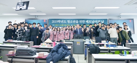 부산외국어대학교 특수외국어사업단는 지난 11월 중 남산동캠퍼스에서 베트남어를 공부하고 있는 국내 고등학생들을 초청해 '2019 청소년을 위한 베트남어의 날' 행사를 개최했다고 3일 밝혔다.