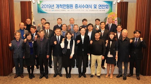 경상대학교는 지난 27일 아시아레이크사이드호텔 목련홀에서 '2019년도 개척한림원 증서수여 및 연찬회'를 개최했다.