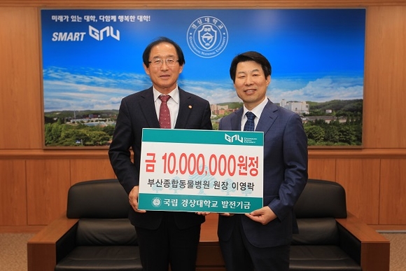 경상대학교는 부산종합동물병원 이영락 원장(수의과대학 동문)이 대학발전기금 1000만 원을 출연했다고 밝혔다. 이 원장은 2000년 수의과대학에 1100만 원, 올해 경상대 ROTC 장학금으로 100만 원을 출연하는 등 남다른 모교 사랑을 실천하고 있다.