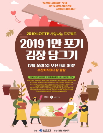 롯데 자이언츠가 오는 5일 오전 9시 30분 사직야구장 광장에서 ‘2019 롯데 사랑 나눔 프로젝트 1만 포기 김장 담그기’ 행사를 연다고 3일 밝혔다.