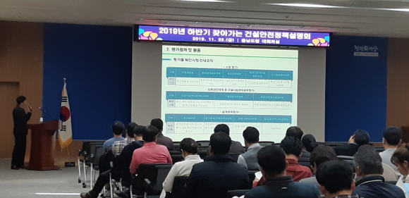 건설현장 안전문화 정착을 위해 지난 2017년부터 반기별로 실시된 정책설명회는 공단 담당자가 건설관계자 및 현장을 찾아가 관련 정책과 제도를 설명하고 안전관리 업무 절차 및 요령 등을 교육하는 방식으로 진행된다.