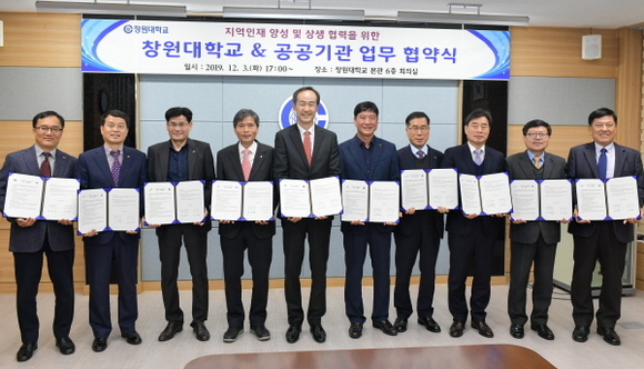 창원대학교는 대학본부 6층 회의실에서 지역인재 양성 및 상생 협력을 위한 공공기관 업무협약을 체결했다고 4일 밝혔다. 협약식에는 창원대 이호영 총장과 보직자, 교직원, 학생, 각 공공기관의 대표 및 임직원 등이 참석했다.