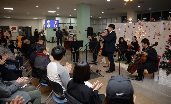 이번 행사에는 ‘드립 커피 시음’, ‘크리스마스 캐럴 연주회’, ‘쿠킹 클래스-관생이 추천하는 SNS 핫 레시피 따라잡기’, ‘크리스마스 포토존 사진 콘테스트’ 등 학생들을 위한 다채로운 코너가 진행됐다.