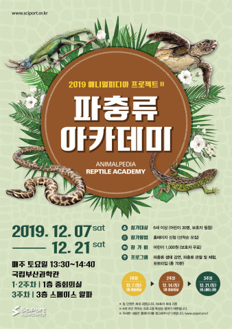 국립부산과학관이 생명존중 가치 확산을 위한 애니멀피디아 프로젝트 ‘파충류 아카데미’를 12월 7일부터 21일까지 매주 토요일 개최한다고 5일 밝혔다.