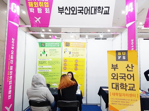 부산외국어대학교 대학일자리센터는 지난달 부산시에서 개최한 청년아세안해외취업박람회에서 '동남아지역 해외취업 컨설팅'을 실시해 필리핀, 라오스, 베트남, 말레이시아, 싱가포르, 캄보디아 등 6개국 기업과 한국에 본사를 둔 지사 등 다양한 기업체가 참가한 가운데 청년의 해외취업 지원에 나섰다.