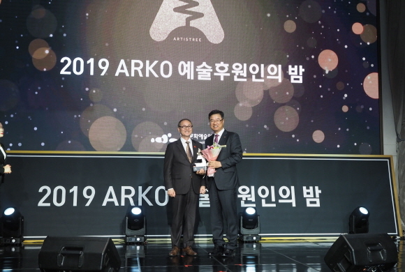 BNK부산은행이 지난 9일 오후 서울 시그니엘 호텔에서 열린 ‘2019 ARKO 예술후원인의 밤’ 시상식에서 문화예술 발전에 공헌한 점을 인정받아 대기업·은행 부문 대상을 받았다고 10일 밝혔다.