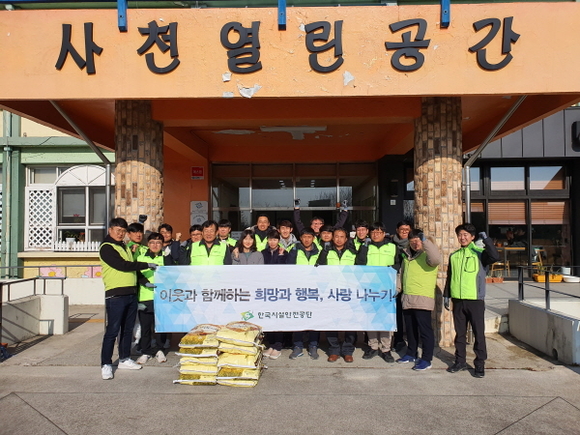 한국시설안전공단은 댐·항만실 직원들이 9일 사천시장애인부모회를 찾아 사회공헌활동을 펼쳤다고 10일 밝혔다. 사회적 가치 실현의 일환으로 봉사활동에 나선 댐·항만실 직원들은 이날 ‘장애인 부모회’를 방문해 생필품을 전달하고 ‘장애인 평생학교’에서 시설물 정비와 환경 미화활동을 벌였다. 한편 한국시설안전공단은 소외된 이웃들과 온기를 나누기 위해 지역 사회복지시설 등을 대상으로 한 사회공헌활동을 정례적으로 해오고 있다.