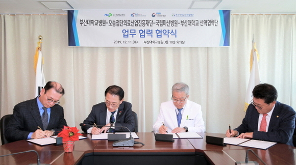 부산대학교병원은 국립마산병원, 오송첨단의료산업진흥재단, 부산대 산학협력단과 11일 본원에서 ‘융합의료분야 연구 협력 및 R&D사업 공동 추진’을 위한 4자 간 업무협약(MOU)을 체결했다고 밝혔다.