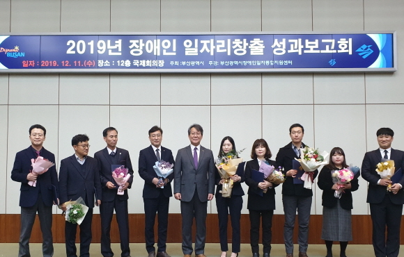 부산환경공단이 지난 11일 오후 부산시청에서 열린 ‘2019 장애인 일자리 창출 성과보고회’에서 장애인 일자리 창출에 이바지한 공로를 인정받아 부산시장 기관 표창을 수상했다고 12일 밝혔다.