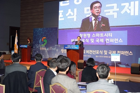 경남 창원시는 12일 창원컨벤션센터에서 시민 및 관내 기업, 유관기관, 전국 지자체 관계자 등 200여명의 청중이 참석한 가운데 '창원형 스마트시티 조성을 위한 비전선포식 및 국제컨퍼런스'를 개최했다.