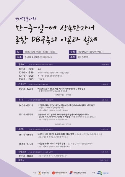 경성대학교 한국한자연구소 HK+사업단은 오는 19일 교내 문화관 204호에서 ‘한국-중국-일본-베트남 상용한자어 종합 DB구축의 이론과 실제’라는 주제로 2019년 국내학술대회를 개최한다고 밝혔다.