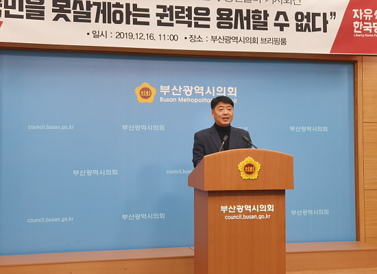 오은택 부산시의원이 16일 오전 부산시의회 브리핑실에서 기자회견을 열고 시의원직을 사퇴하겠다는 뜻을 공식적으로 밝혔다. 이와 함께 내년 총선에 출마할 뜻을 밝혔다.