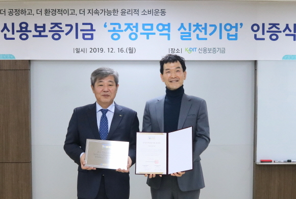 신용보증기금(신보)이 국내기업, 기관 가운데 최초로 ‘공정무역 실천 기업’ 인증을 취득하고 16일 서울 구로구 소재 신보 인재개발센터에서 인증식을 열었다고 밝혔다.