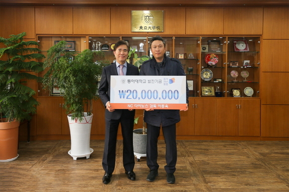 동아대학교는 NC 다이노스 이동욱 감독이 개교 100주년 대비 학교사랑 캠페인 ‘동아 100년 동행’ 발전기금 1,000만 원과 야구부 발전기금 1,000만 원 등 총 2,000만 원을 기부했다고 17일 밝혔다.