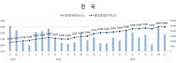 주택도시보증공사(HUG)는 ‘2019년도 11월 말 기준 민간아파트 분양가격 동향’ 조사 결과를 17일 발표했다.
